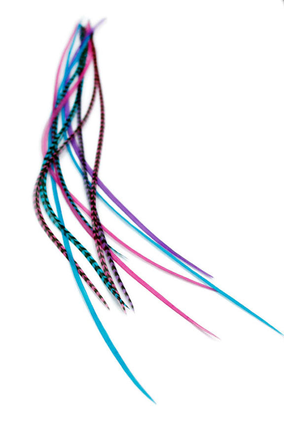 These are stunning real rooster feather hair extensions. They can be washed and dried, straightened, curled, and styled with your own hair. Included in your pack are 3, 5, or 10 feathers (colours will arrive EXACTLY as pictured). Each feather is guaranteed 8.5 - 13 Inches long (23- 33 cm). These feathers are not bonded together, and can be worn individually.